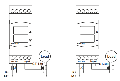 Digital panel/integrated ammeter and voltmeter for alternating current 100 amps 150V - 260V AC, indirect measurement, measuring transformer included, TENSE panel meters