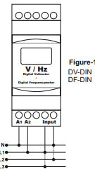 The frequency meter is mounted on a standard 35 mm DIN rail