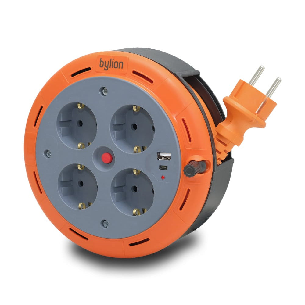 This model has four sockets and a sturdy H05VV-F cable with a cross-section of 3G1.00 mm² and a length of 5 meters, ensuring sufficient reach for various applications. The orange color of the cable increases its visibility and helps ensure safety in use. Using this reel will ensure easy and quick switching on and off of devices, as well as eliminate cable clutter, and the presence of USB ports allows you to charge a smartphone or other electronic devices without a charger.