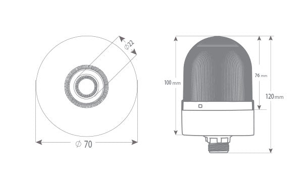 Flashing ø70 NUT.CONN.SIGNAL BEACON WITH BUZZ., 40-250V AC/DC., BLUE WITH 10CM EXT.TUBE
